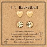4-Piece Basketball Jewelry Set: Includes two pairs of stud earrings (heart-shaped + basketball design), totaling four pieces. Mix and match the basketball earrings and heart styles for everyday wear or game days, ideal as sport gifts or basketball gifts.