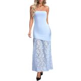 [Material] - This strapless dress is made smooth, lightweight single-layer fabric and features a lace hem. It's breathable and comfortable, suitable for all-day wear. The lace adds a touch of feminine softness