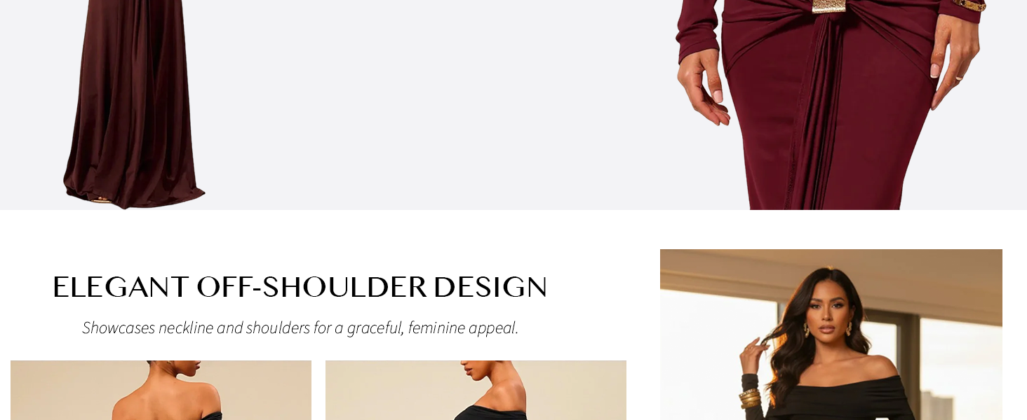 - Elegant Off-Shoulder Design – Showcases neckline and shoulders for a graceful, feminine appeal.