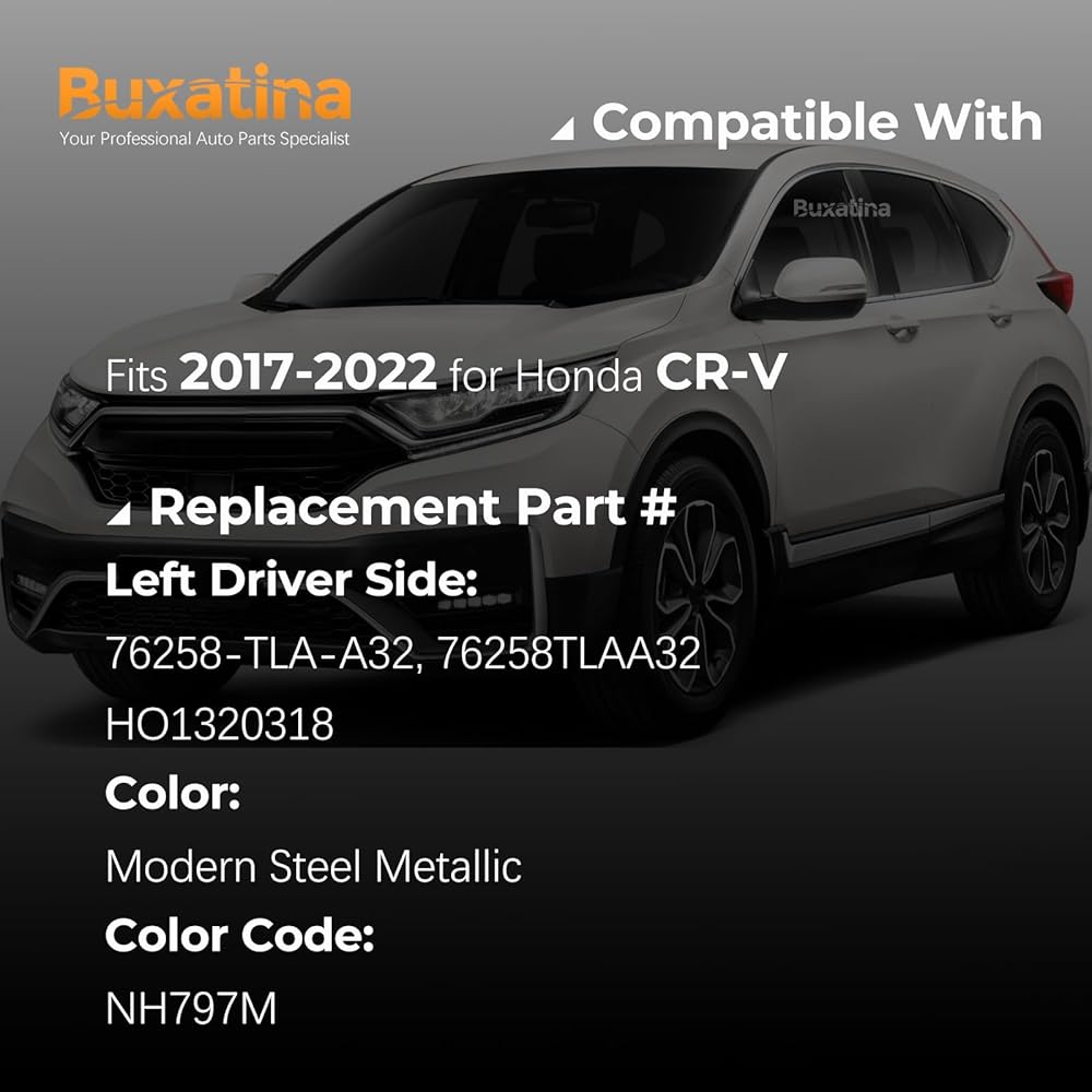 【REPLACEMENT PART NUMBER】 Left Driver Side: 76258-TLA-A32, 76258TLAA32, HO1320318 Color: Modern Steel Metallic; Color Code: NH797M; Check the Color Code on the drivers side door jamb sticker