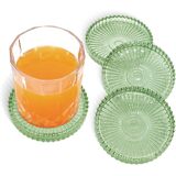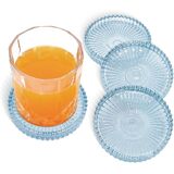 STRIPE GLASS COASTERS - Made thickened glass with a textured design, bottom stripe provides stability, perfect for hot or cold drinks