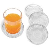 FASHION DESIGN - These round clear glass drink coasters feature a elegant stripe pattern with smooth raised decorative edge, makes cup coasters look more fashionable, adding a touch of elegance to any setting while can protect tabletops from scratches, water rings and heat marks erosion. The inner flat base ensures stability for mug, cocktail glasses, and drink containers