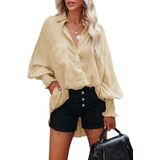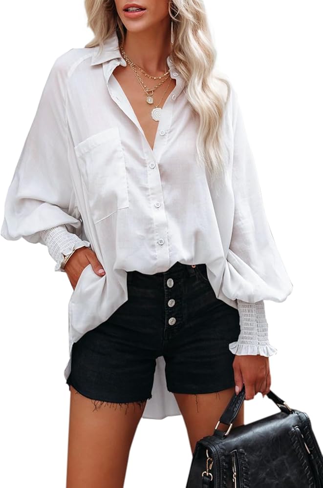 Oversized Boyfriend Fit & Loose Comfort: This women's button down blouse features an oversized boyfriend tunic silhouette with loose fit, offering a relaxed yet chic look. Perfect for hiding body flaws and ensuring all-day comfort, whether you're running errands or lounging. The smocked detail adds a touch of texture, elevating the basic style.