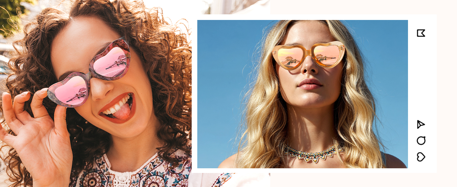 Protect Your Eyes - Wearing these heart-shaped sunglasses will not only make you look stylish, but it will help keep your eyes healthy and protect your eyes from the sun even on the brightest of days. Polarized lenses reduce intense glare and provide vivid color vision, ensuring perfect vision for any occasion.