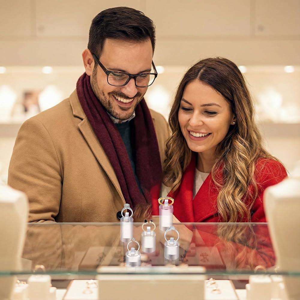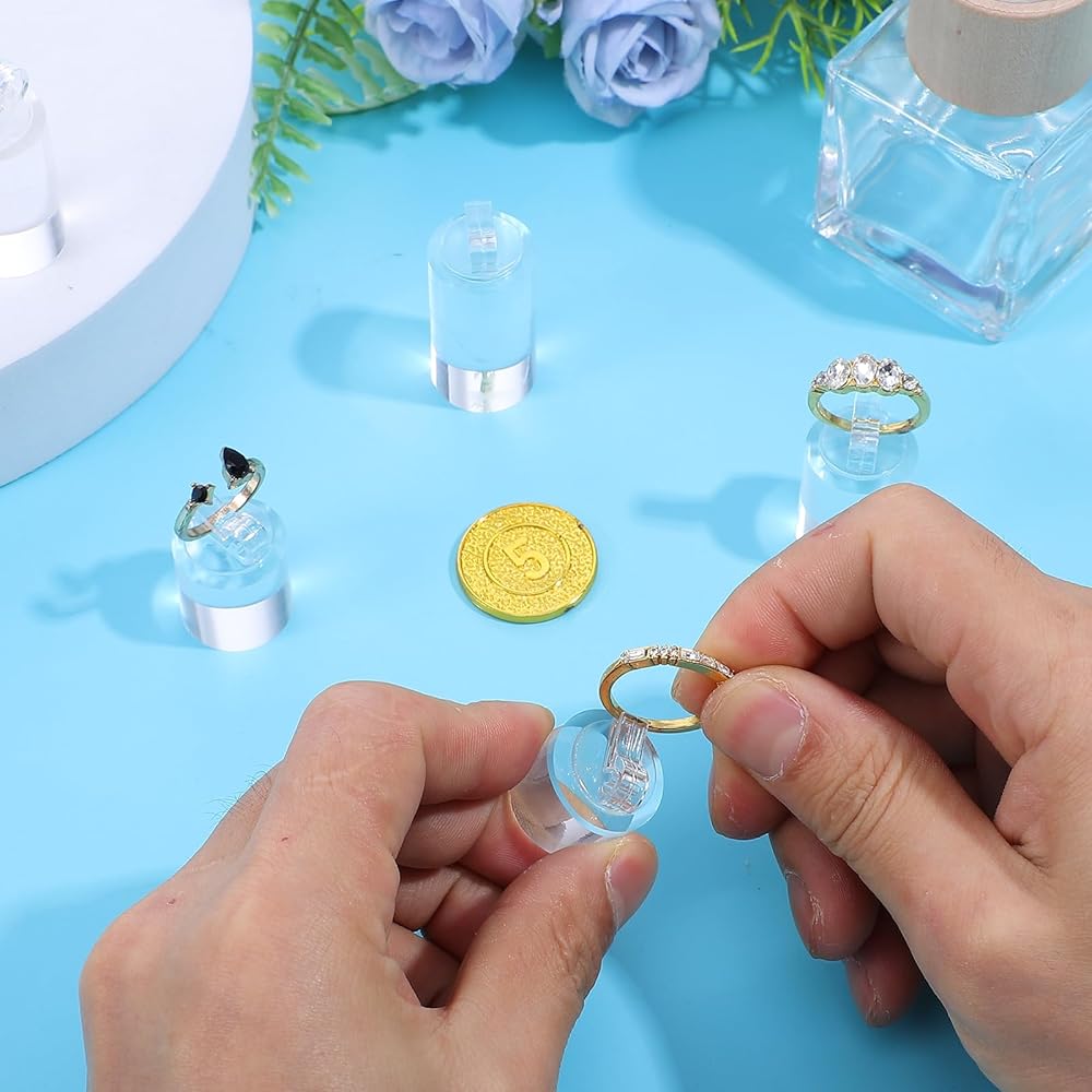 【Enhanced Presentation Design】Featuring a cylindrical design with a beveled top and a built-in small clip, these holders securely and elegantly display rings at an optimal angle. The design highlights the ring's details and sparkle, attracting more attention