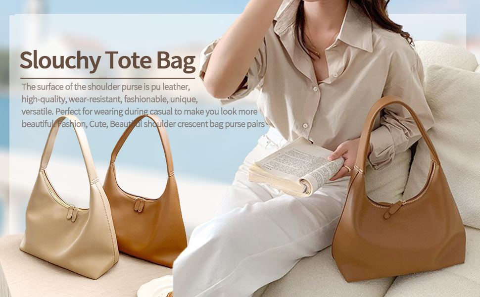 Slouchy PU Leather Tote Handbag: The surface of the shoulder purse is pu leather, high-quality, wear-resistant, fashionable, unique, versatile. Perfect for wearing during casual to make you look more beautiful. Fashion, Cute, Beautiful shoulder crescent bag purse pairs perfectly with your outfit