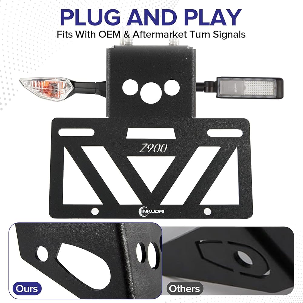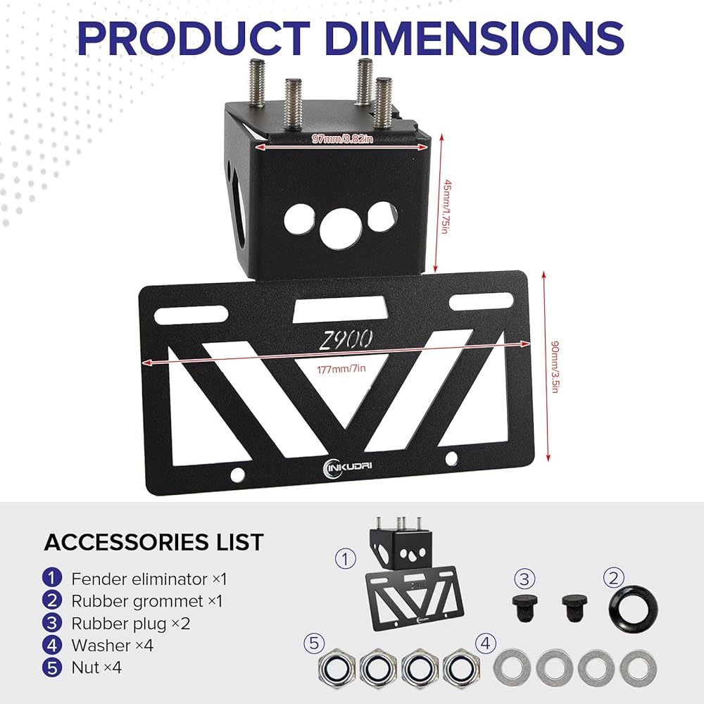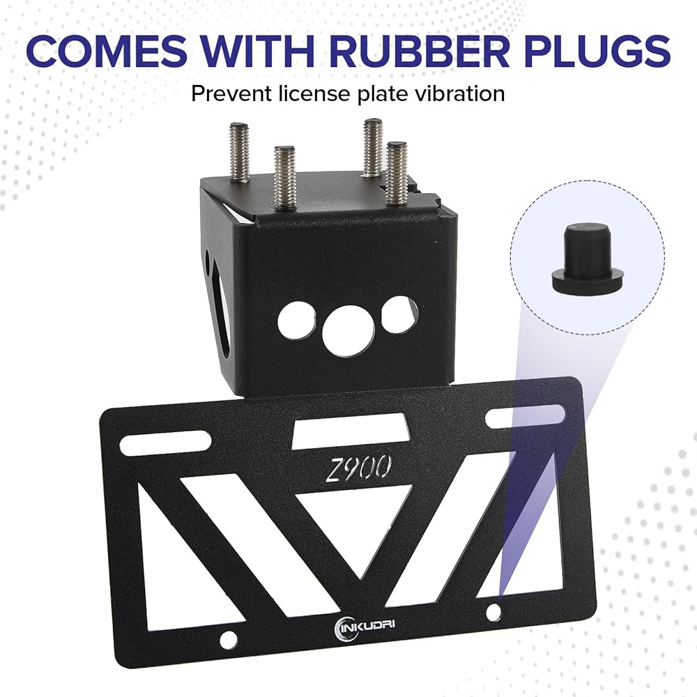 REDUCE VIBRATION - Z900 license plate bracket comes with 2 rubber plugs for increased stability of the license plate. Both of these can help to avoid vibration and noise during driving.