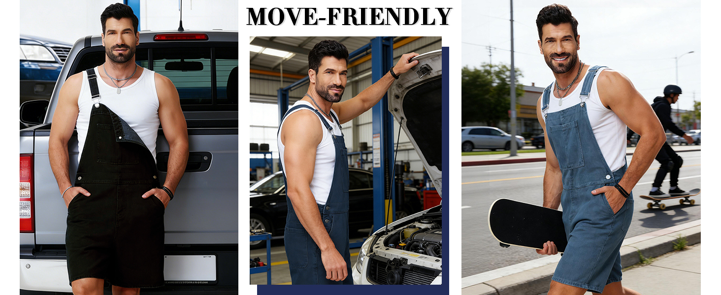 AOBUTE Men Denim Bibs Overalls Shorts Romper with Pockets