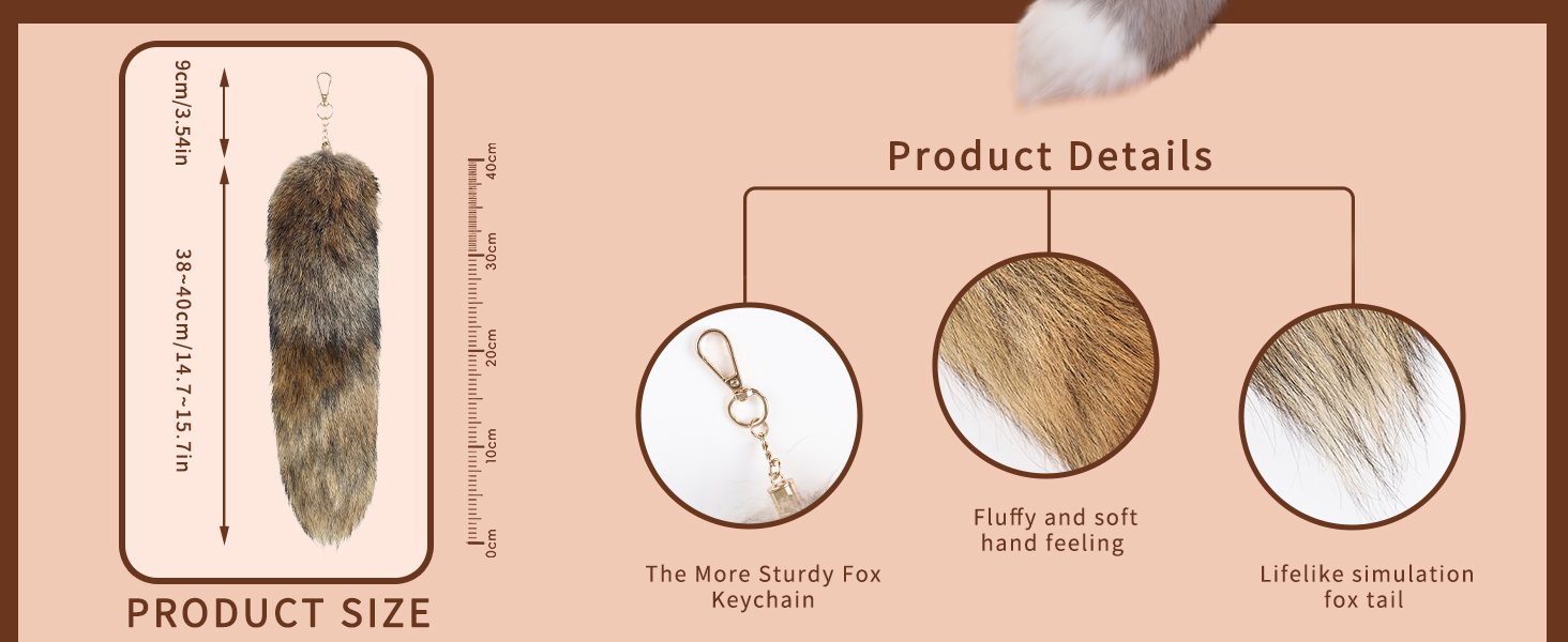 【Luxuriously Soft, Naturally Beautiful】Crafted raised fox tail hair, our 40cm (15.7”) fluffy tail delivers an unmatched silky-soft touch—no synthetic fibers, no chemical smell. Just pure, natural fluff that feels as good as it looks
