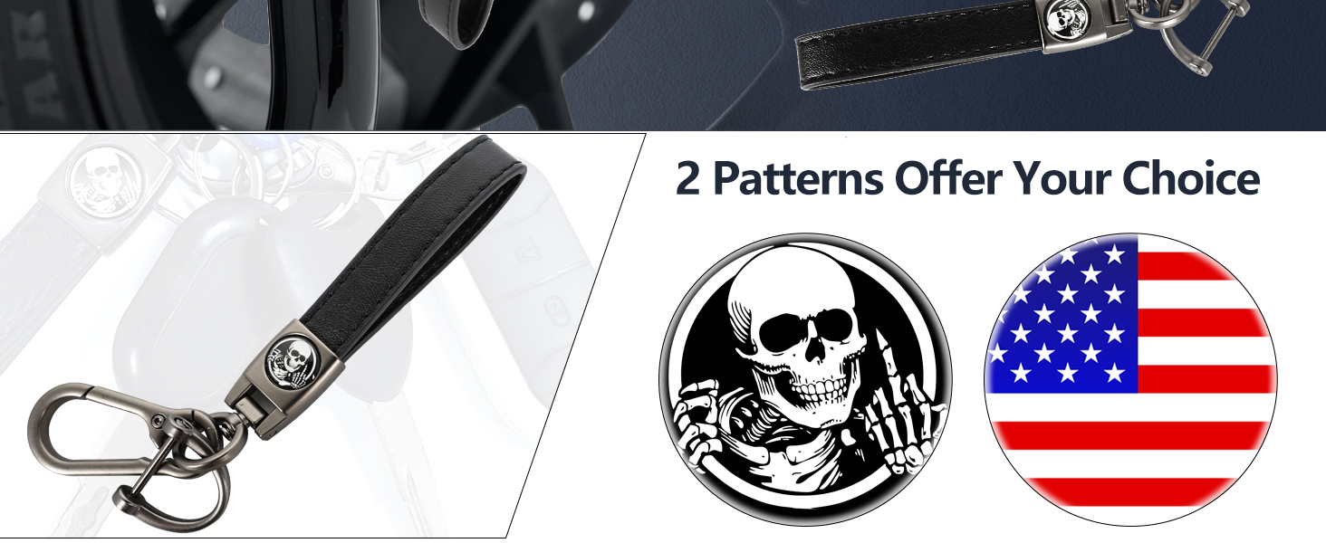 Unique Sticker: This keychain is not only made of rust-proof and scratch-resistant zinc alloy but also soft and comfortable leather material. Moreover, it is also equipped with unique resin-coated stickers. Currently, there are skull style and American flag style for you to choose from