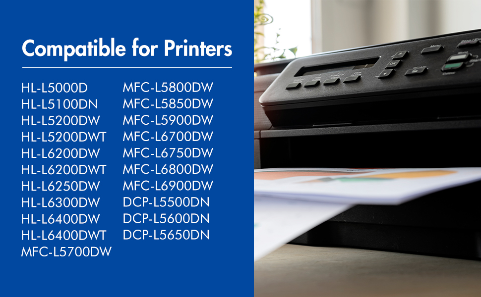 - Compatible for Printer: DCP-L5500DN DCP-L5600DN DCP-L5650DN; MFC-L5700DW MFC-L5800DW MFC-L5850DW MFC-L5900DW MFC-L6700DW MFC-L6750DW MFC-L6800DW MFC-L6900DW