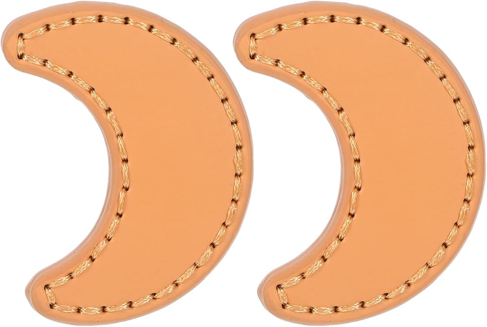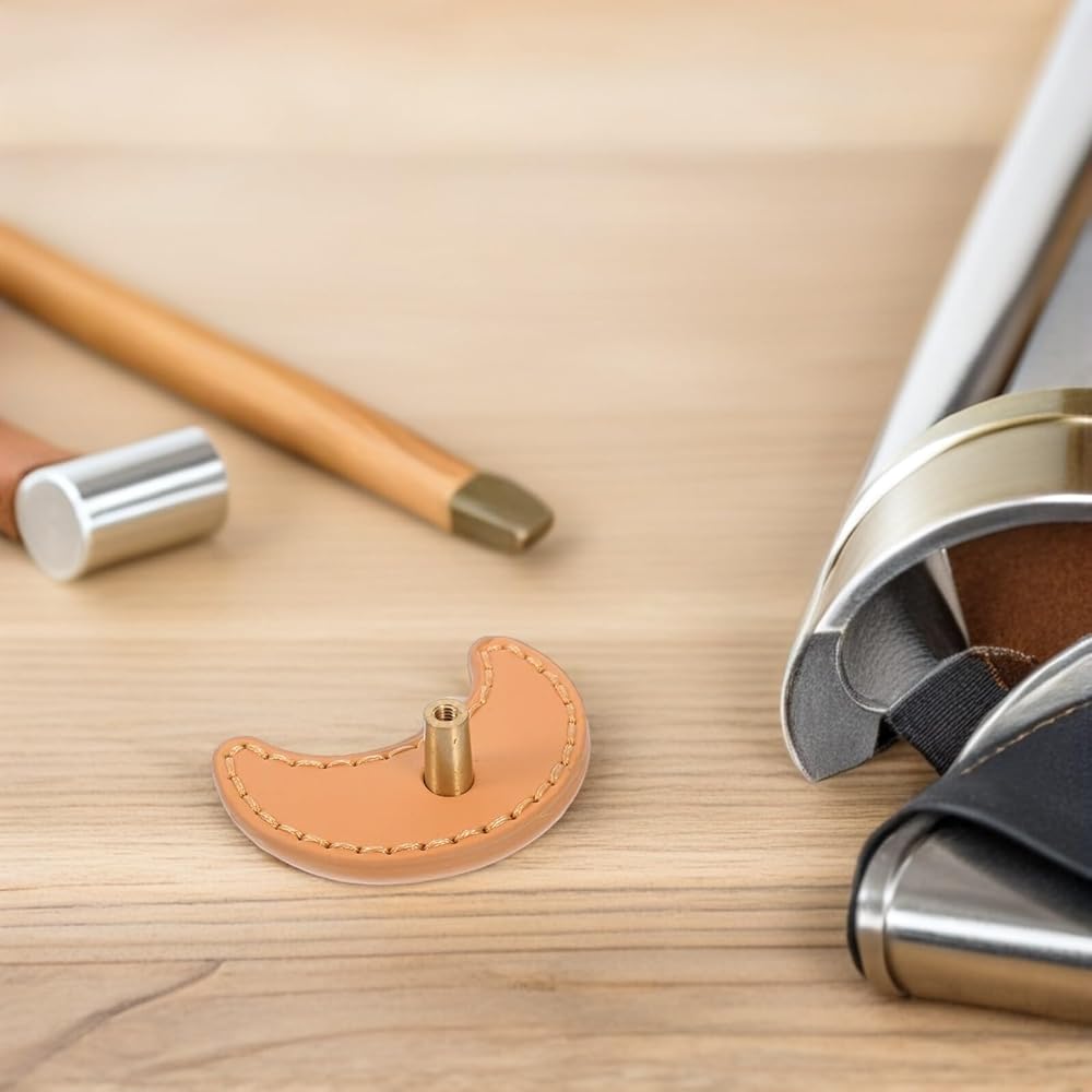 Luxshiny 2pcs Moon Shaped Cabinet Door Handles with Khaki Pu Leather, Single Hole Drawer Pulls for Wardrobe and Dresser Furniture Hardware