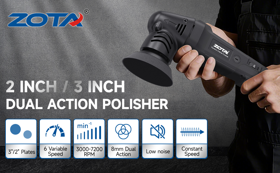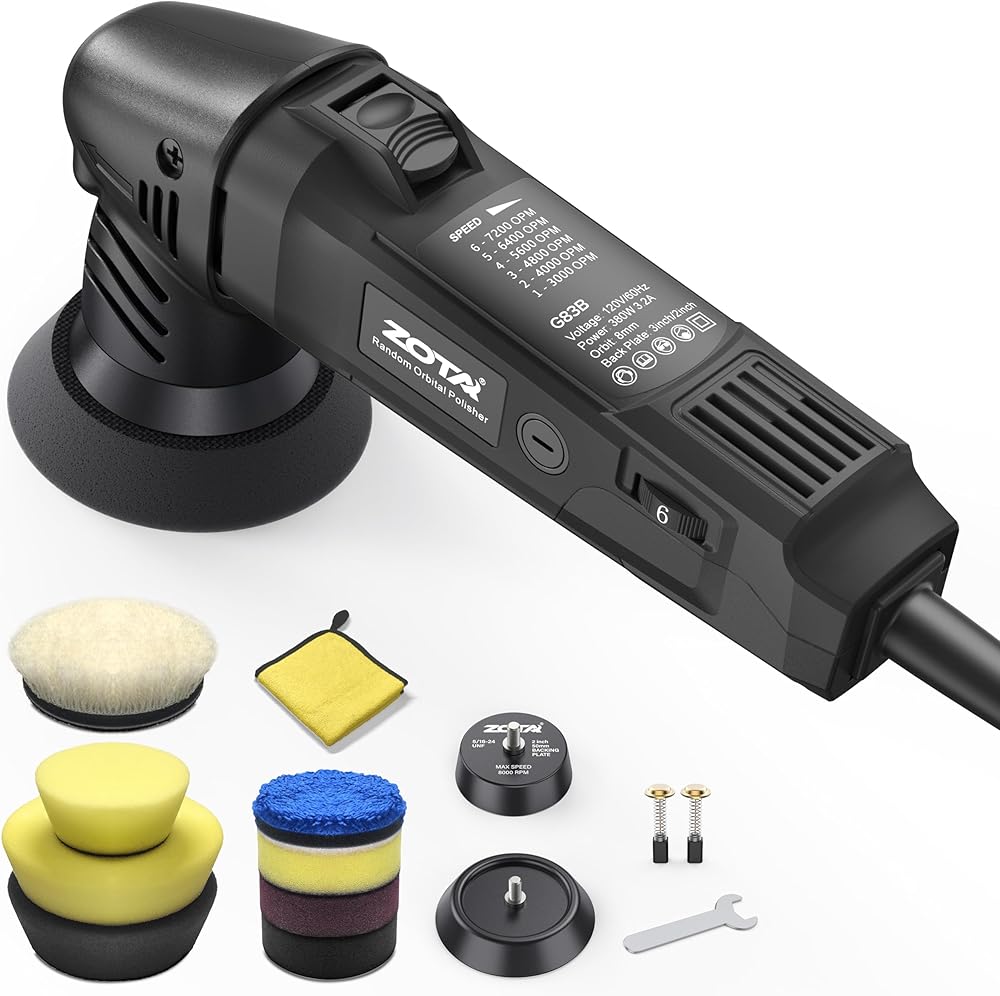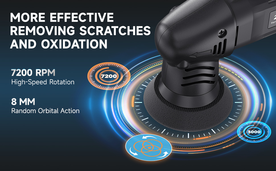 ➤【Variable Speed & Precision Control】 With an 8mm random orbital action and variable speed dial (3000–7200 RPM), you get the control you need for everything from light polishing to heavy correction.