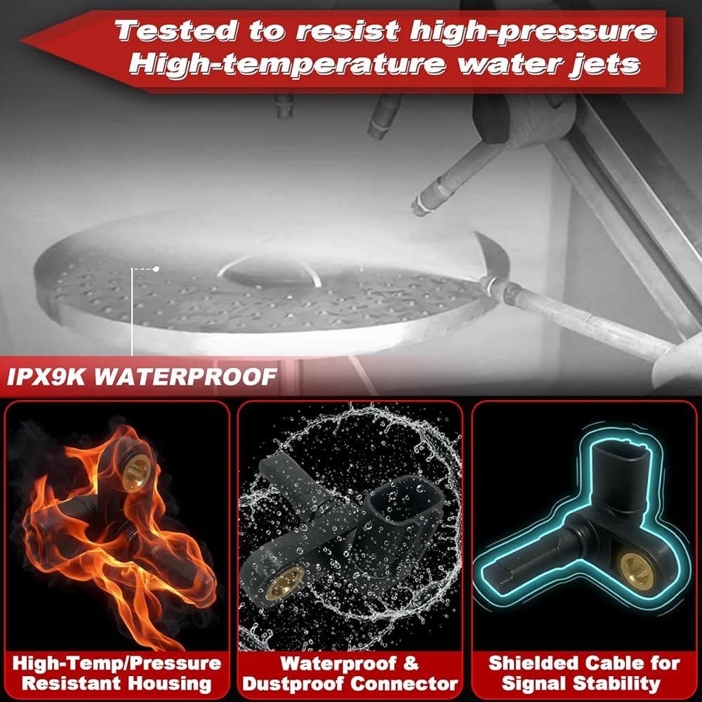 【Excellent Waterproof Protection – IPX9K Tested】Speed Sensor passed high-pressure, high-temperature water jet tests under IPX9K standards. Reliable in rain, mud, or car wash conditions.