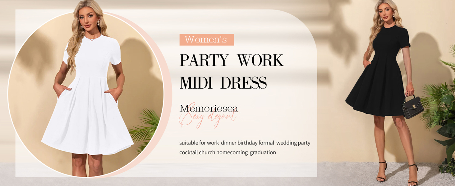 Matching:This midi dress was made good by its simple design, fit great, and was very flattering. You can pair it with nice jewelry and stylish bags , necklaces, earrings, to make you look more charming