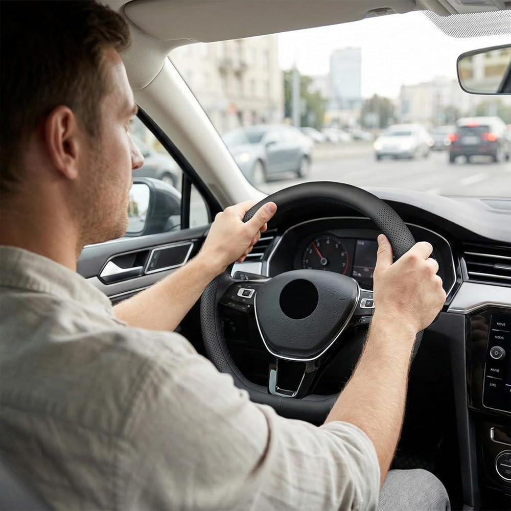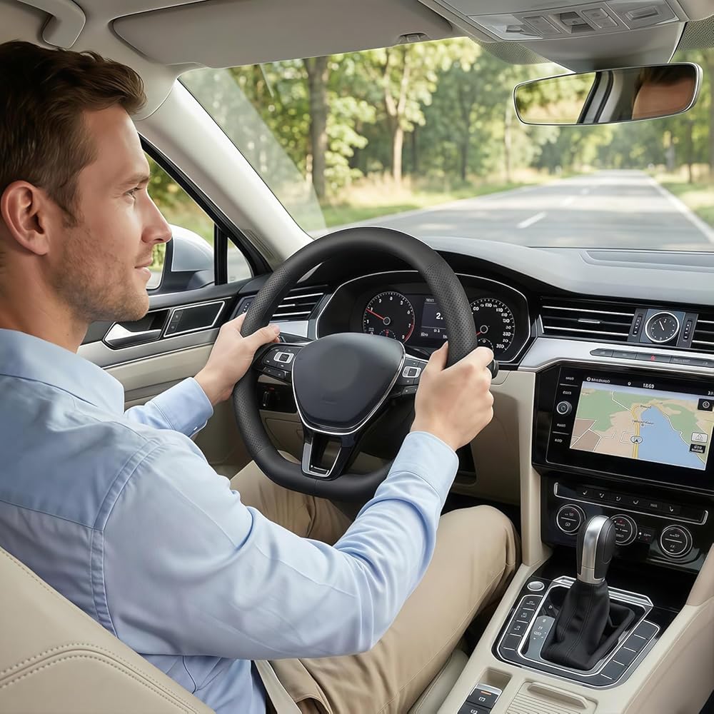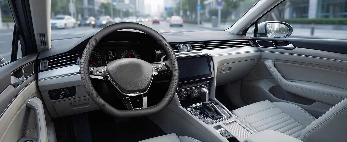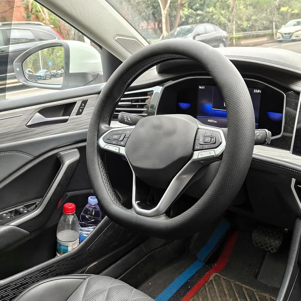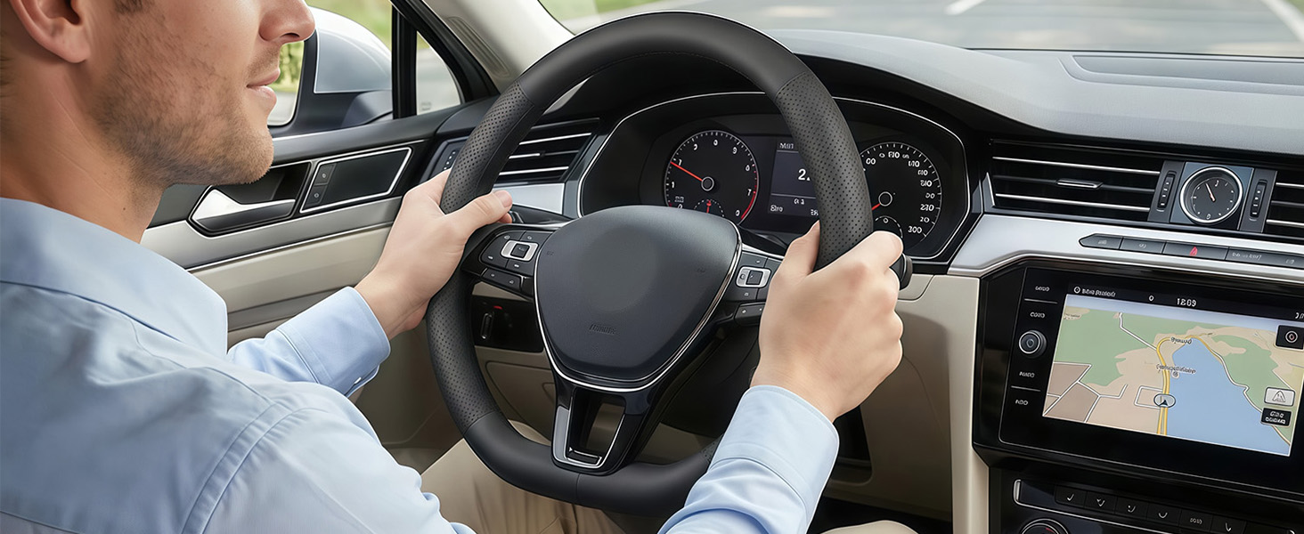 【Custom fit】The FQMY steering wheel cover fits for Volkswagen all standard steering wheels 14.5-15 inches (37 cm to 38 cm), Perfectly fits for VW Atlas (2017-2025) Tiguan (2015-2025) ID.4 (2021-2025) Taos (2022-2025) Passat (2016-2025) Golf (2015-2025) Jetta (2015-2025) Beetle (2012-2020,2022-2025) Polo (2013-2025).