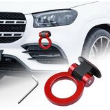 Tow Hook Kit, Front Rear Bumper Trailer Ring Eye Hook Decoration Hitch Sticker, Universal Auto Exterior Ring Shaped Towing Hooks for Car Truck SUV RV, Car Accessories (Red)