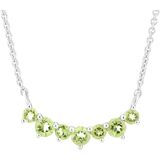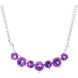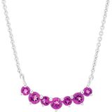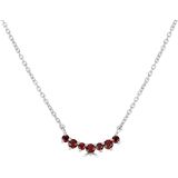 Hand crafted in sterling silver with seven, 2.5mm and 2.0mm round cut genuine Rhodolite semi precious stones. 18 inch cable chain with spring lock closure. Care: Wipe clean with soft polishing cloth.