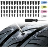 • Tire Plug Kit Contents: This tire repair rubber nail kit includes 100pcs tire repair nails for emergency repairs, featuring three sizes (30pcs medium for 2-4mm breaks, 40pcs small for ≤3mm breaks, and 30pcs large for 3.5-5mm breaks), and 1pc screwdriver, to meet your needs