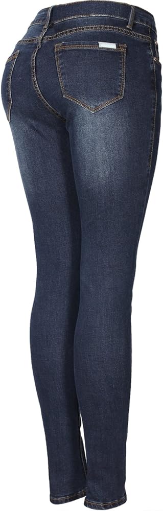 2LUV Women's Solid Stretchy 5 Pocket Skinny Jeans Back to School Junior Clothing Apparel Dark Denim 3