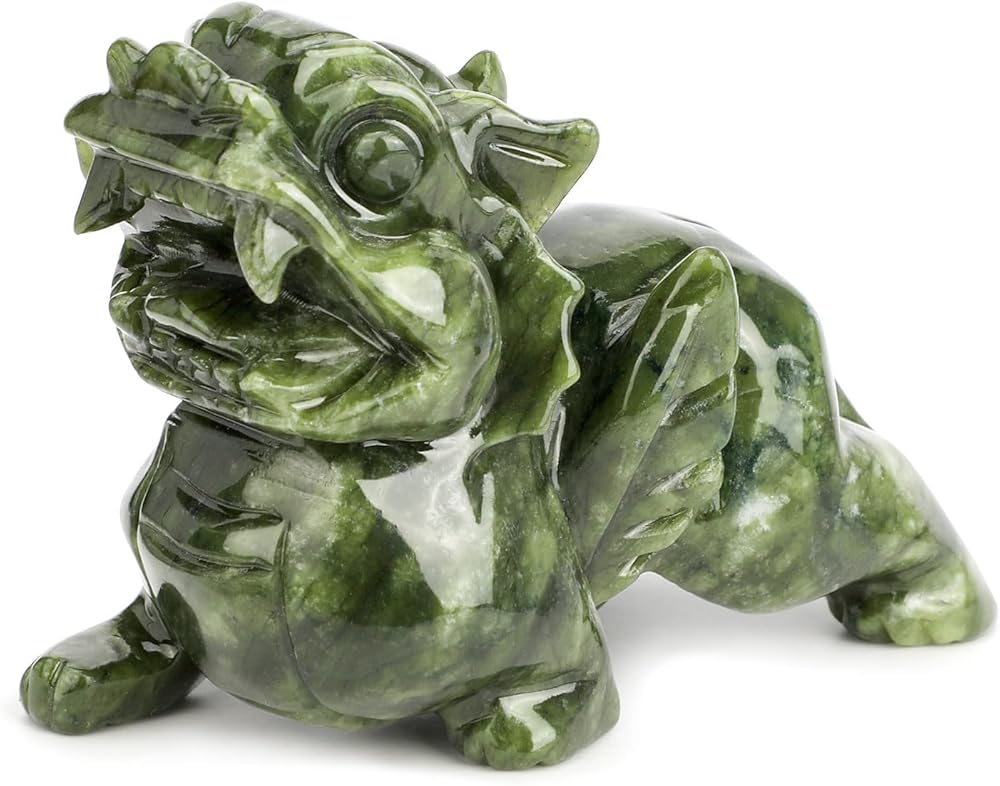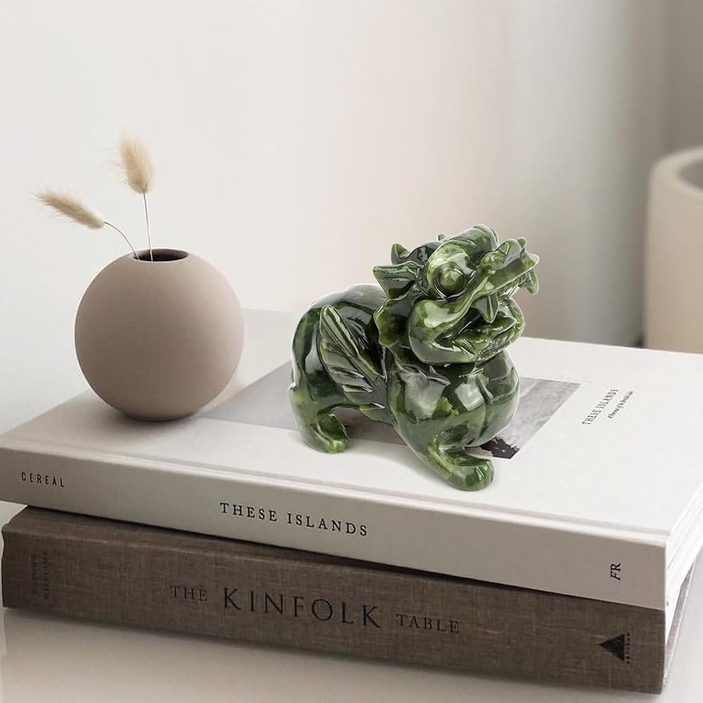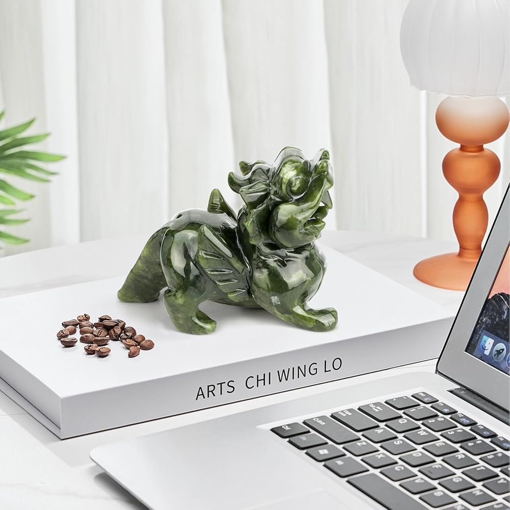 This authentic green jade Pi Xiu statue represents the pinnacle of traditional Chinese carving artistry. Unlike common resin replicas that lose luster over time, our 100% natural jade develops richer patina with age, making it a true heirloom piece. The hand-chiseled details on the creature's ferocious teeth, flared nostrils, and outstretched wings demonstrate 8+ hours of artisan labor per batch - a stark contrast to factory-molded synthetics. According to Feng Shui masters, positioning this guardian facing the main door helps: Block financial leaks with its sealed bottom Attract wealth opportunities through its gold-ingesting mouth Neutralize workplace conflicts via its protective aura Product Specifications: ✔ Material: Jade ✔ Dimensions: 3"×2.3"X1.7"