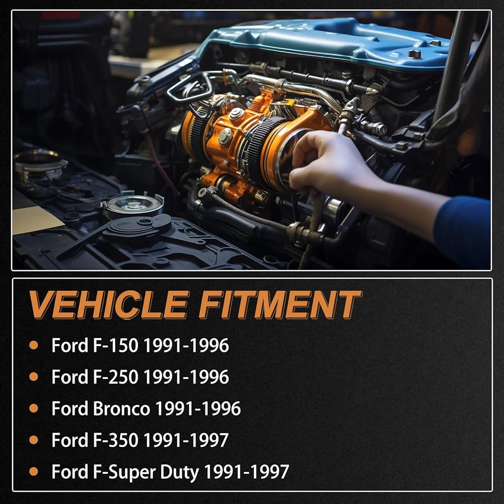 Vehicle Fitment: compatible with Ford F-150 1991-1996, compatible with Ford F-250 1991-1996, compatible with Ford Bronco 1991-1996, compatible with Ford F-350 1991-1997, compatible with Ford F-Super Duty 1991-1997.