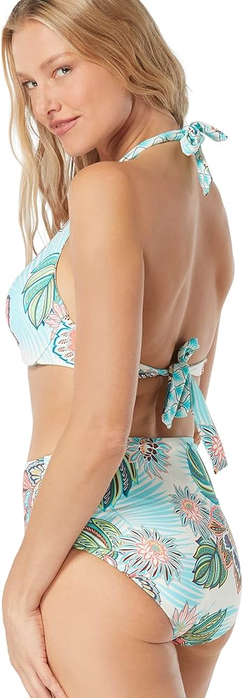 Style your look in the chic and classy design of the COCO REEF Tropical Lotus Twist Bikini Top. Made from a soft and luxe jersey with allover floral print. Ties at both neck and back. Twisted front halter neckline with molded cups. 85% nylon, 15% spandex. Hand wash, hang dry.