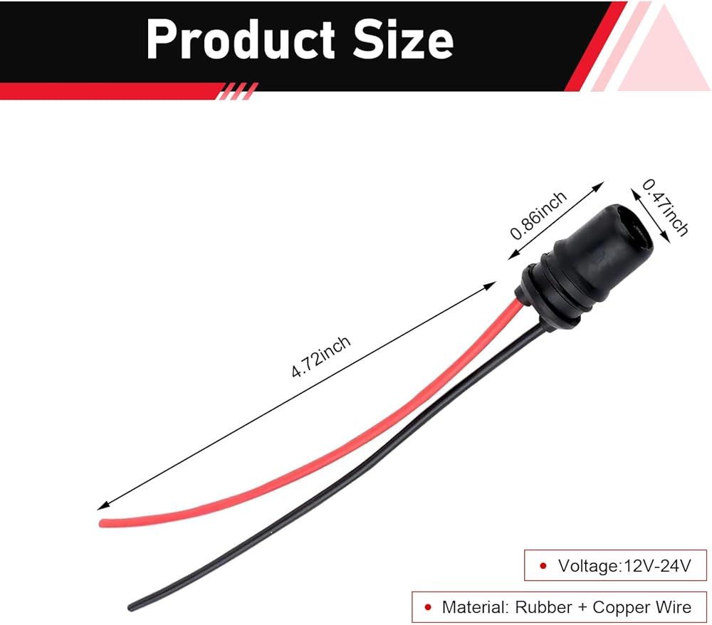 Size: This socket is manufactured with precise machining, with strict dimension control: the plug size is 0.86 " x 0.47 " and the wire harness length is 4.72 ". The highly matched precise dimensions ensure a seamless fit with T10 bulbs and original vehicle instrument circuits.