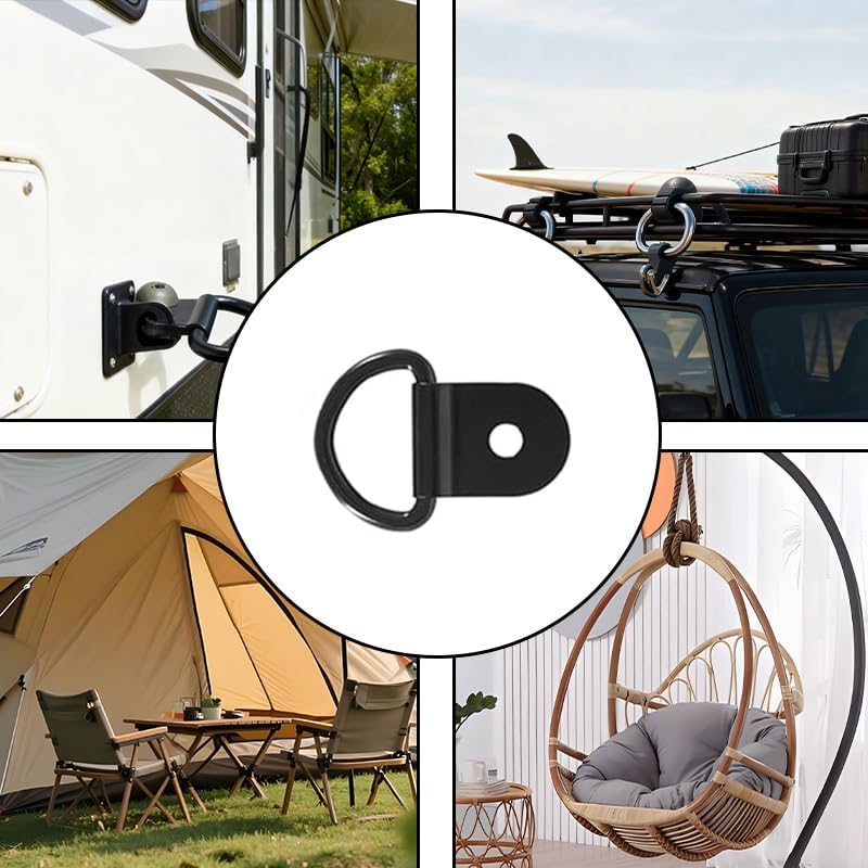 Wide Application: These D-ring tie down anchors add handy anchor points for ropes, bungee cords, or belts. They're great for cargo management on trailers, trucks, RVs, boats, kayaks, motorcycles, and ATVs, and also work to secure furniture, appliances, and camping gear.