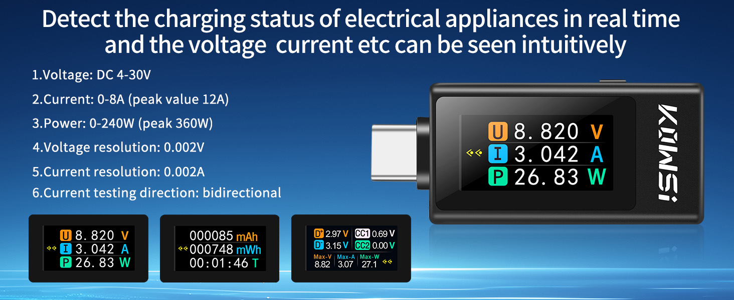Cable Internal Resistance Measurement: Utilizes the voltage drop method to measure cable resistance, automatically calculating it upon connection to help evaluate charging efficiency and cable quality.