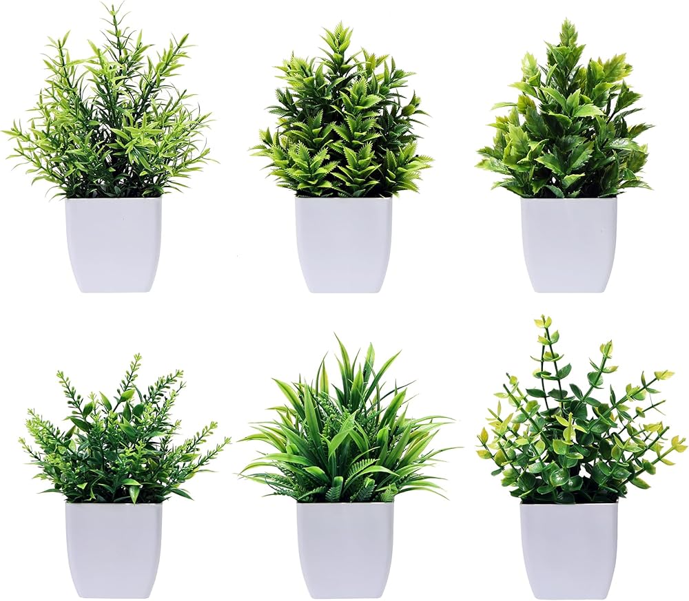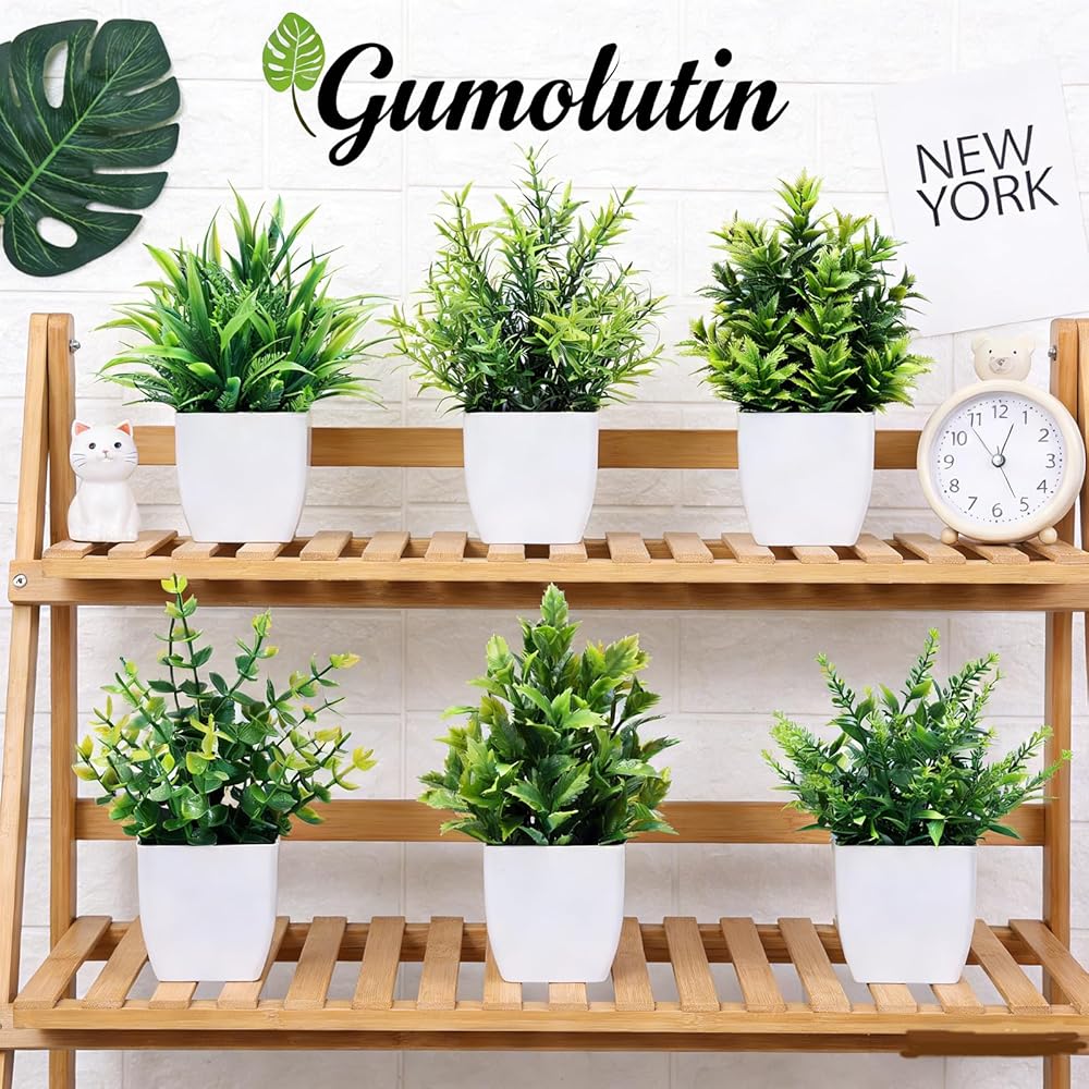 Transform your space with Gumolutin collection of mini artificial plants - the perfect low-maintenance solution for adding a touch of natural beauty to any indoor setting. These realistic miniature potted plants are ideal for desks, shelves, bathrooms, and home decor accents. Each carefully crafted piece brings life to small spaces without the need for watering, sunlight, or regular maintenance. The miniature bonsai and other small artificial varieties in this set maintain their vibrant appearance year-round, making them perfect for offices, apartments, or any area where you want to introduce greenery without the commitment of real plants. These versatile decorative pieces come complete with pots, ready to enhance your decor right out of the box. Add a lasting touch of nature to your surroundings with these charming mini artificial plants that look fresh and appealing in any season.