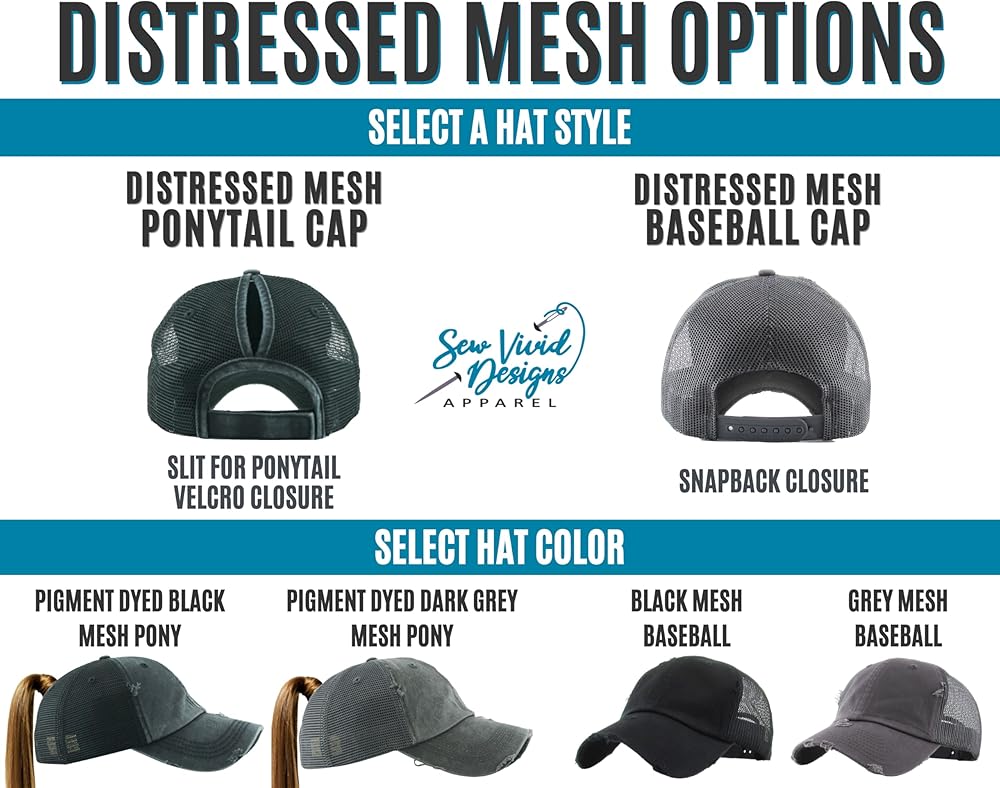 Sew Vivid Designs Monogram Hat | Distressed Baseball Cap or Ponytail Hat | Women's Custom Embroidered Cap