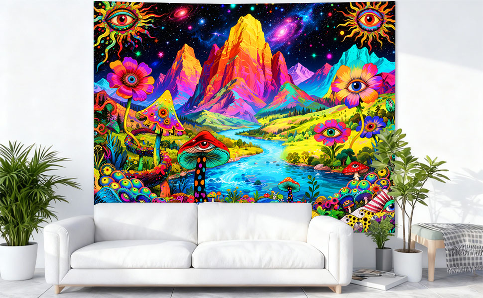 Unique design: Dreamy flower eyes mushroom tapestry. Immerse yourself in the natural scenery of colorful mountains and rivers, gaze at the starry sky, and fully enjoy the tranquility and beauty.