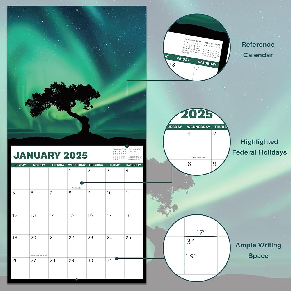 Perfect Gift- The beautiful aurora design of the wall calendar and the superior planning features dictate that it can be given as a present to your family and friends. Everyone will thank you all year long for this thoughtful present. Birthday presents