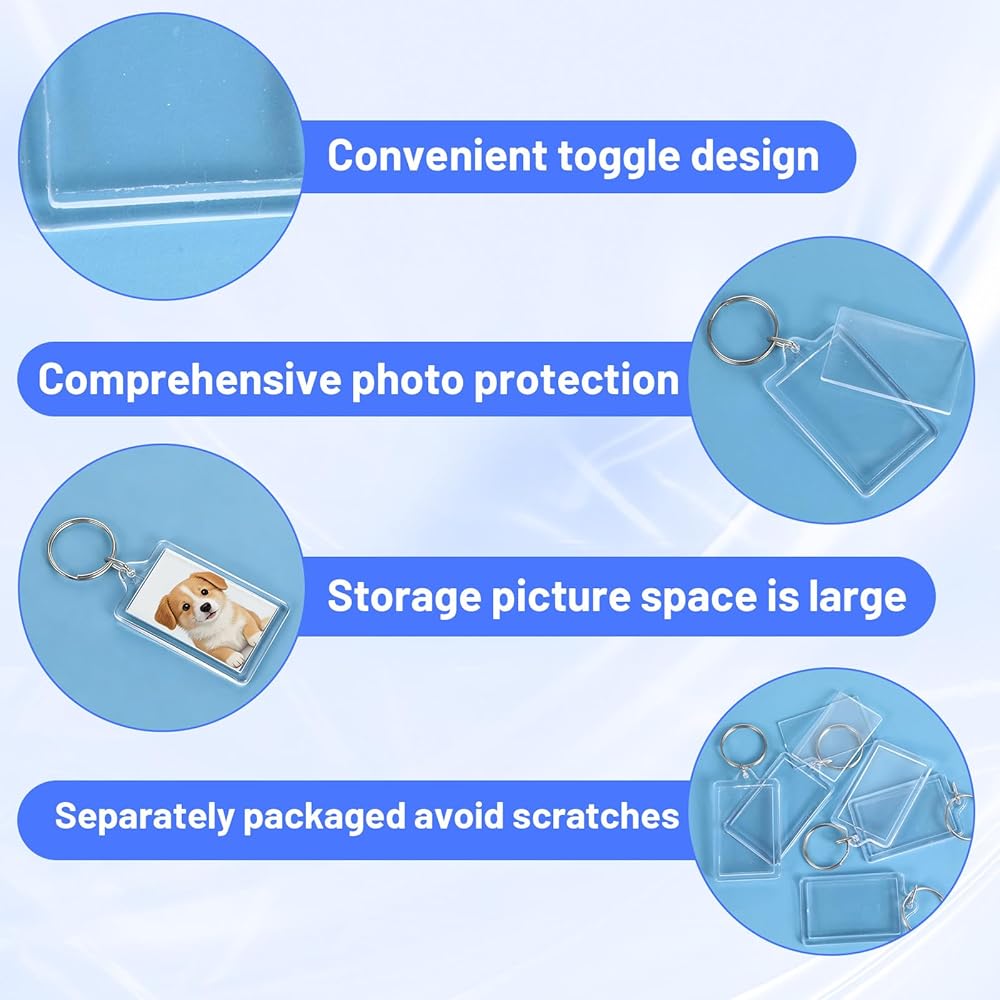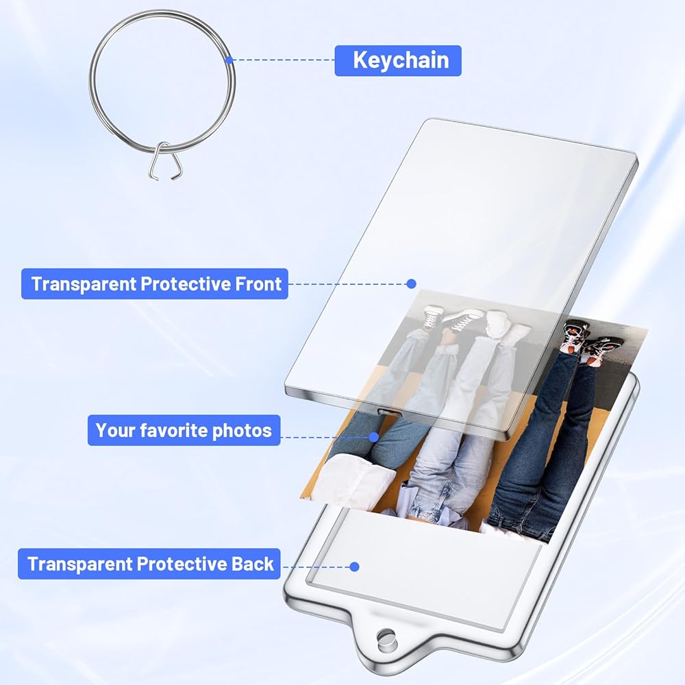 【Crystal Clear & Sturdy】:Crafted from high-quality acrylic, these clear keychains offer exceptional clarity to showcase your pictures beautifully.