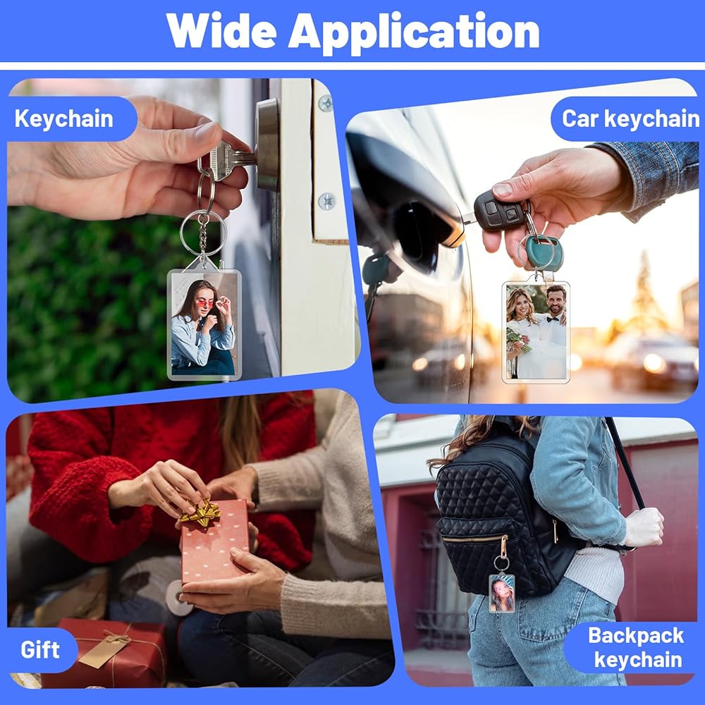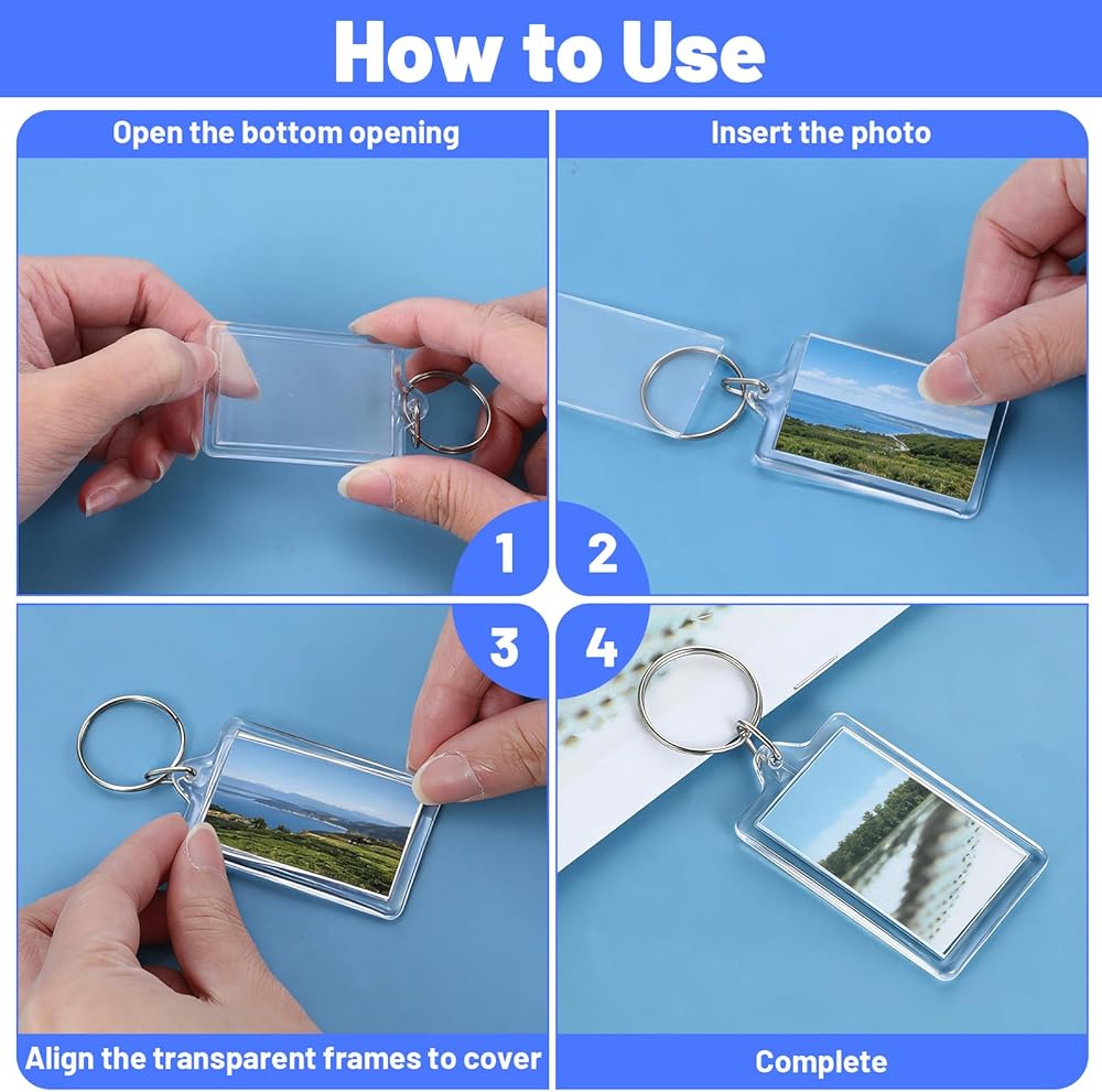 【Easy to Use】:This acrylic photo frame keychain is simple to operate. Just remove the transparent outside, insert the photo of the corresponding size, and then fix the outside back onto the keychain.