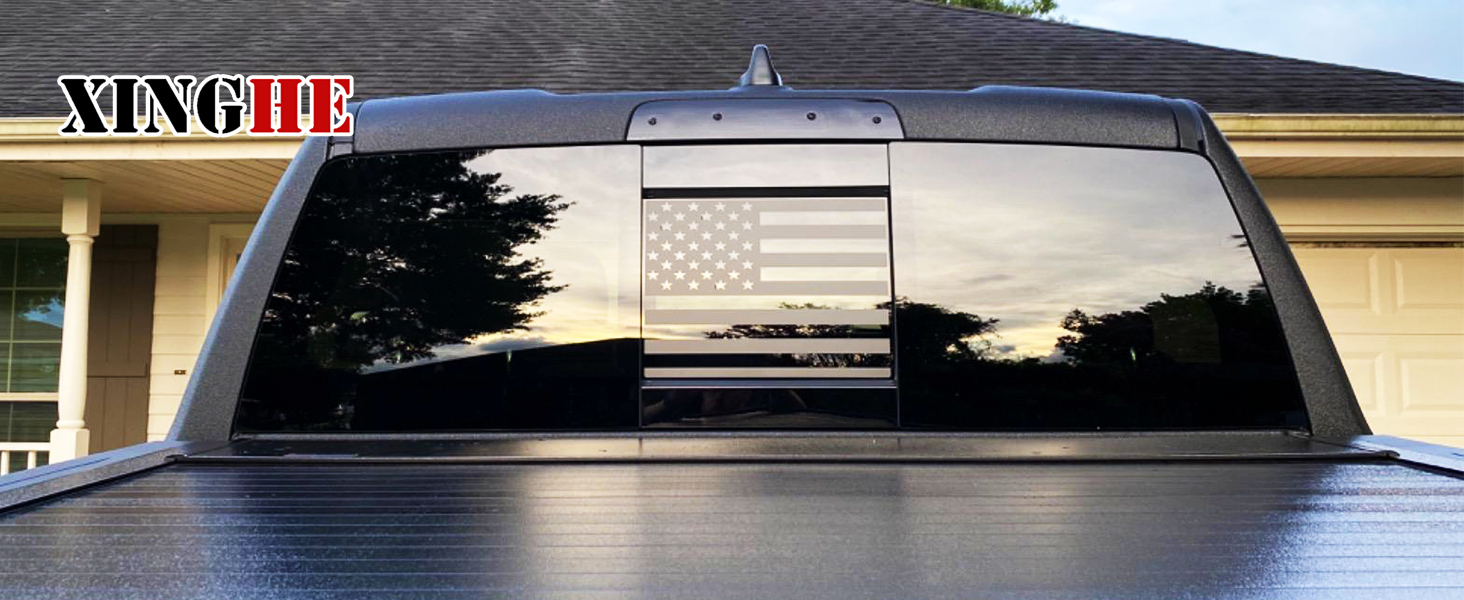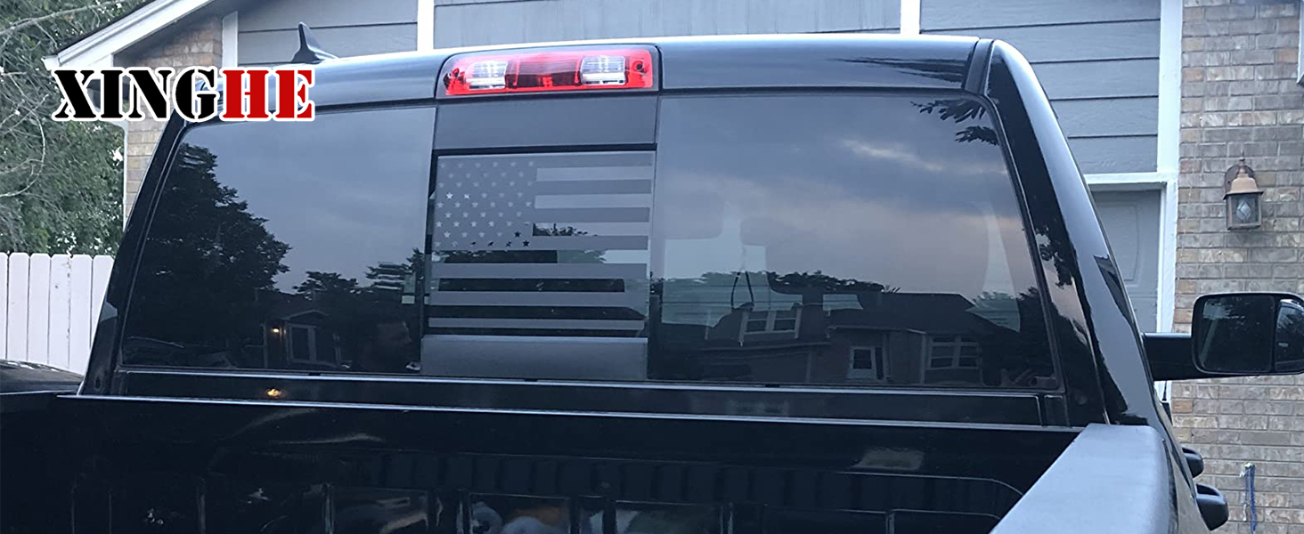 🚗【Product Details】Matte black, vinyl, waterproof american flag decals for trucks. Pre-applied transfer tape.Window decals are removable but not reusable. It is removed more easily by using hair dryer.
