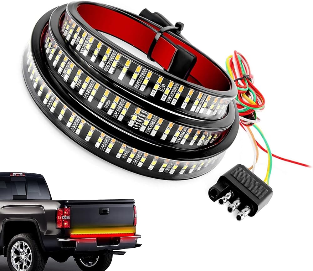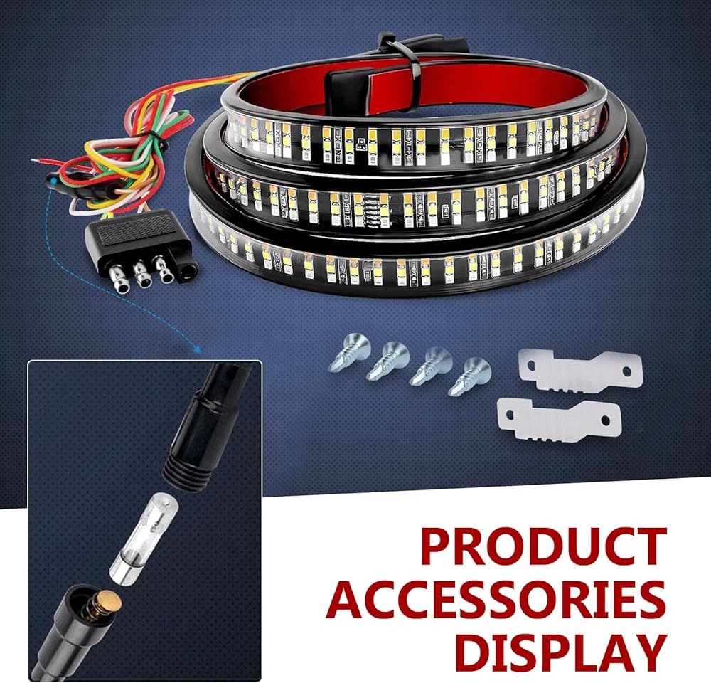 2.This LED tailgate light bar comes with adhesive strips and a 4-pin plug for plug-and-play convenience.