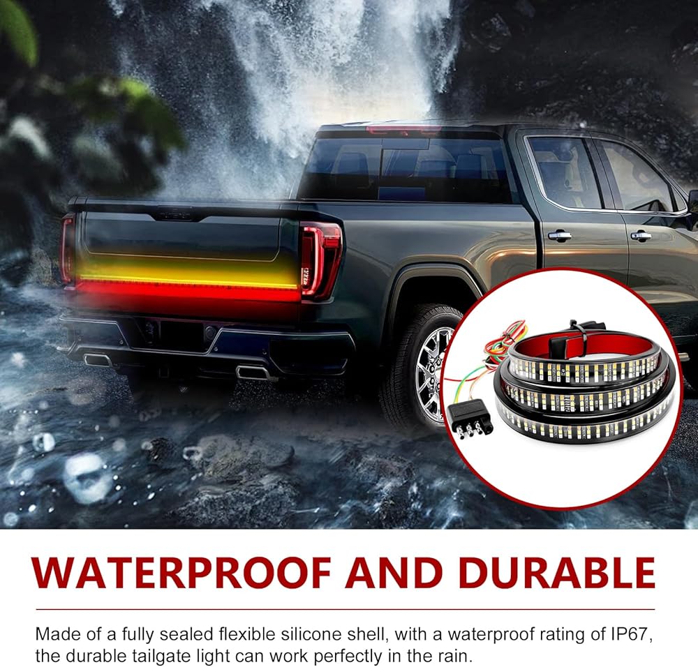 High Quality: This LED tailgate light bar features a fully sealed flexible silicone rubber housing with an IP65 waterproof rating. The constant LED driver includes overload protection and over-temperature protection, ensuring a longer service life.