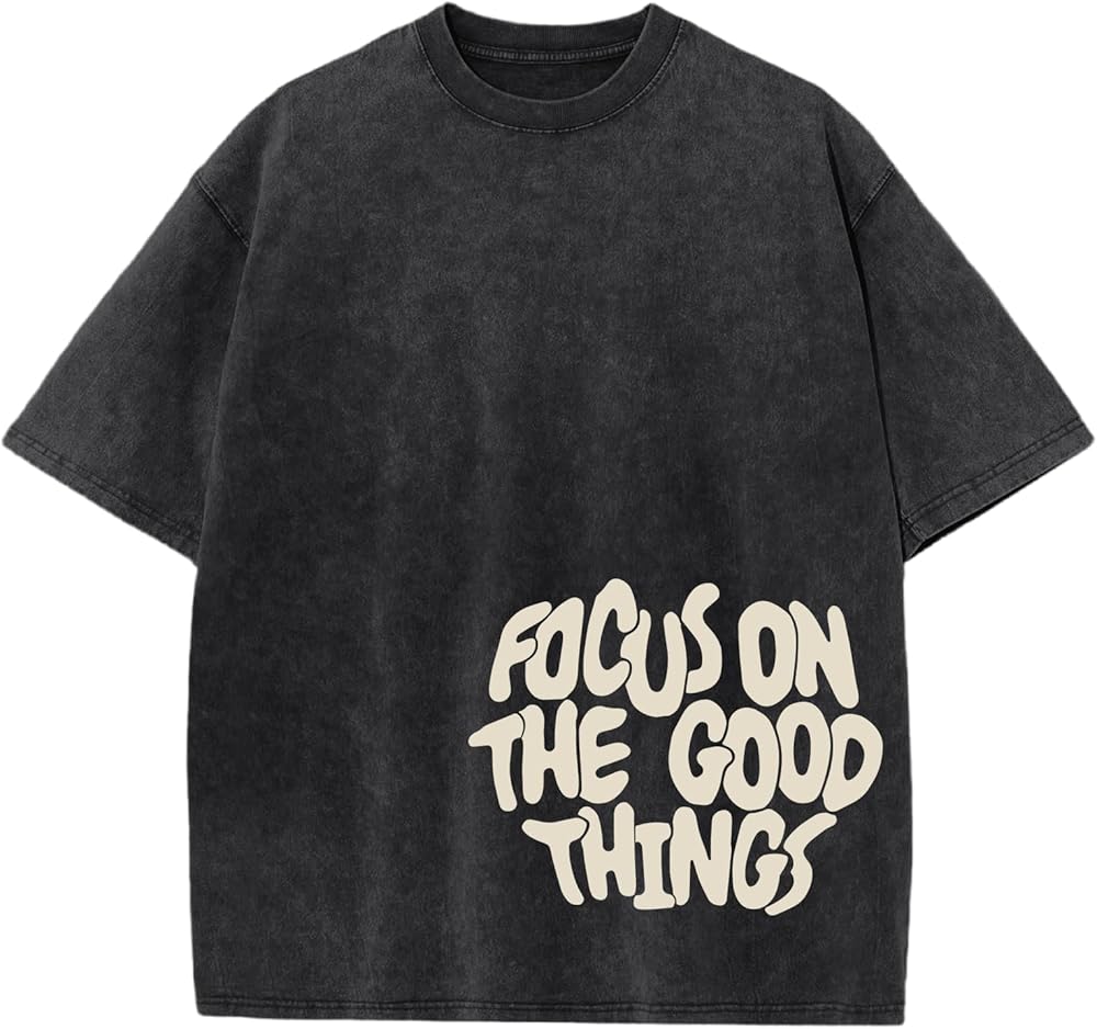 • Features: Mens graphic t-shirts, acid wash cotton tshirt, mental health awareness shirt, letter print with focus on the good things inspirational shirts, positive message shirts for men, vintage oversized motivational t shirt, mens streetwear shirts