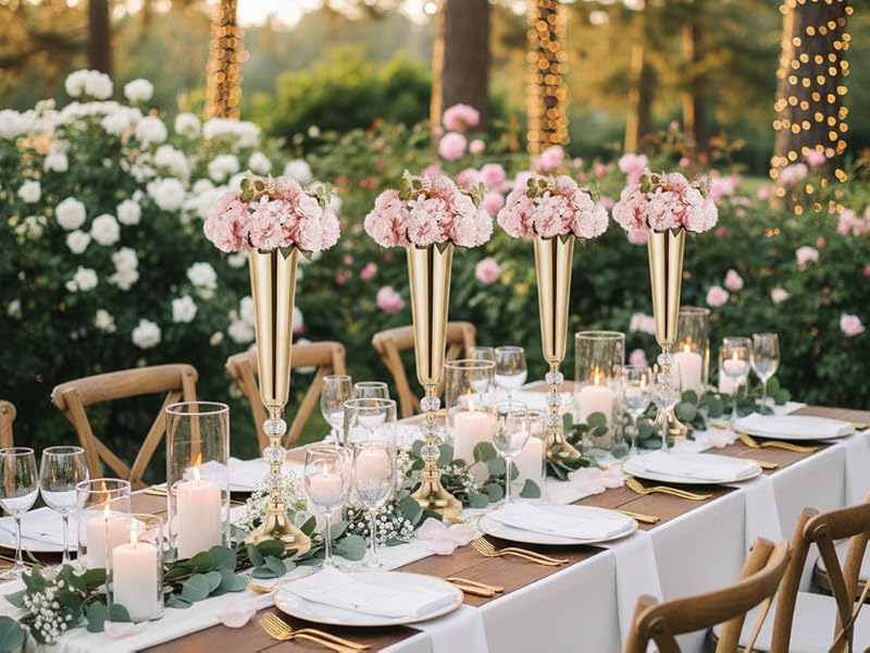 VERSATILE: Simply displayed alone or paired with flowers, artificial flowers, feathers, garlands and bouquets, these versatile trumpet vases are eye-catching no matter where they are placed. Perfect for parties, wedding receptions, centerpiece for table.