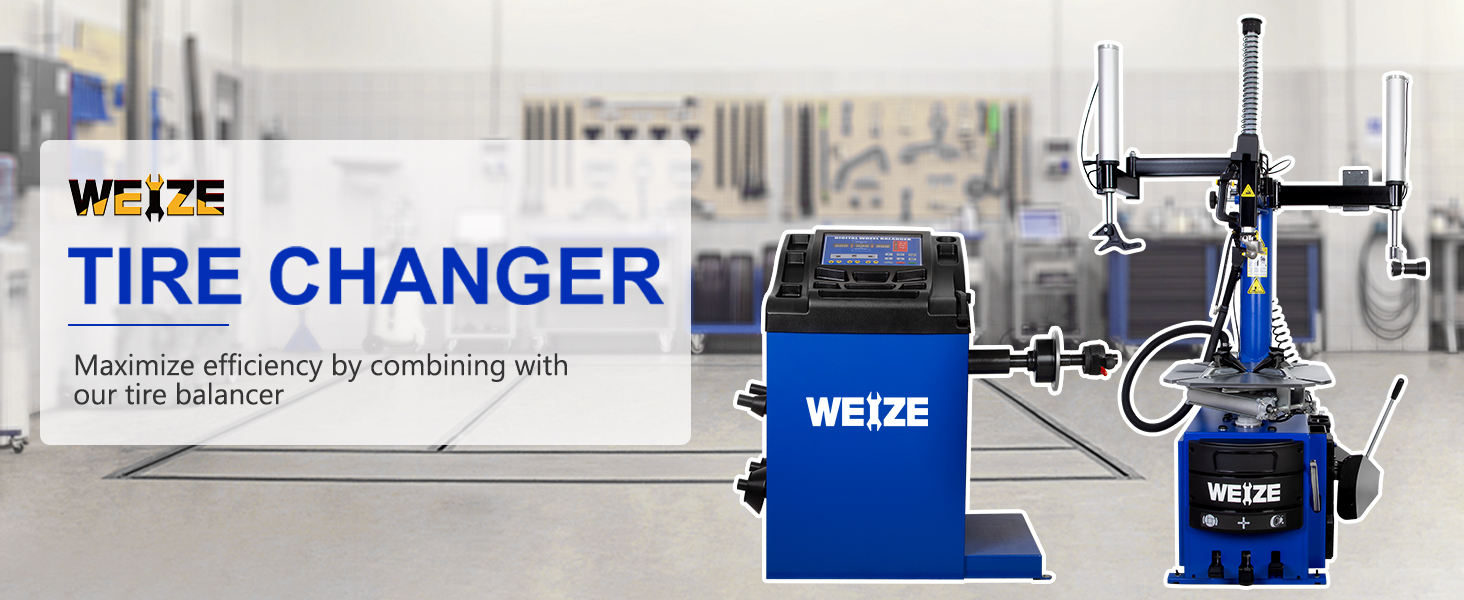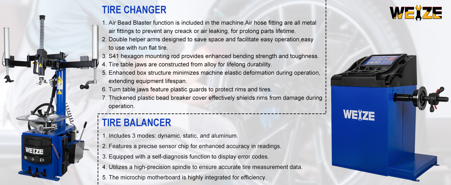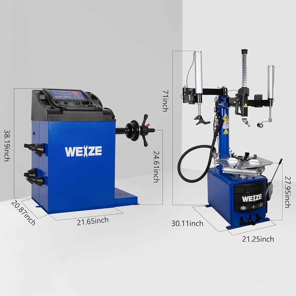 WEIZE 110V 2.0 HP Tire Changer and Wheel Balancer Combo,10''-24'' Rim Air Bead Blaster Tire Changer Machine with Dual Assist Arms, for Tire Changing, Tire Mounting and Balancing
