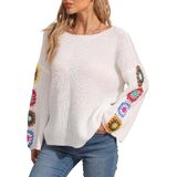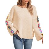 Feature: Flower embroidery, crew neck, long sleeve, knitted sweaters