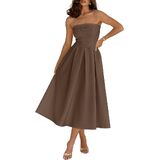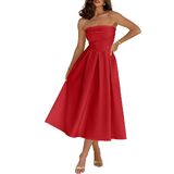 Material - Made of 95%chinlon 5%elastane.Stretch - Medium, Thickness - Medium, Softness - Soft.This strapless dress is made of lightweight, soft, and comfortable fabric that is skin friendly, highly elastic, and non transparent, ensuring a comfortable and smooth silhouette, suitable for both casual and formal occasions.