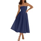 Caracilia Women Summer Midi Dress,slim fit,Size - (S-XL),Made of 45%rayon 48%polyester 7%elastane.This is definitely the elegant midi dress you must have for cocktail parties, birthdays, and everyday gatherings in 2026.