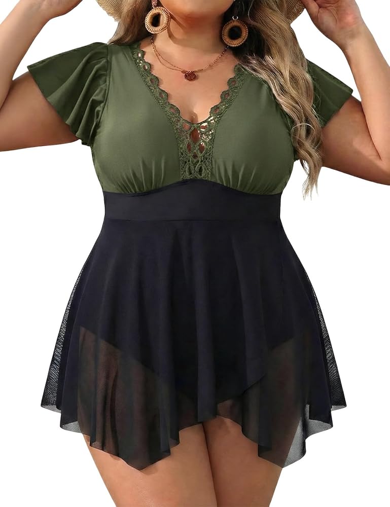 Flutter Sleeve & Skirt Coverage: The playful flutter sleeves hide upper arm areas while the double-layer irregular skirt provides excellent modest coverage for the hips and thighs