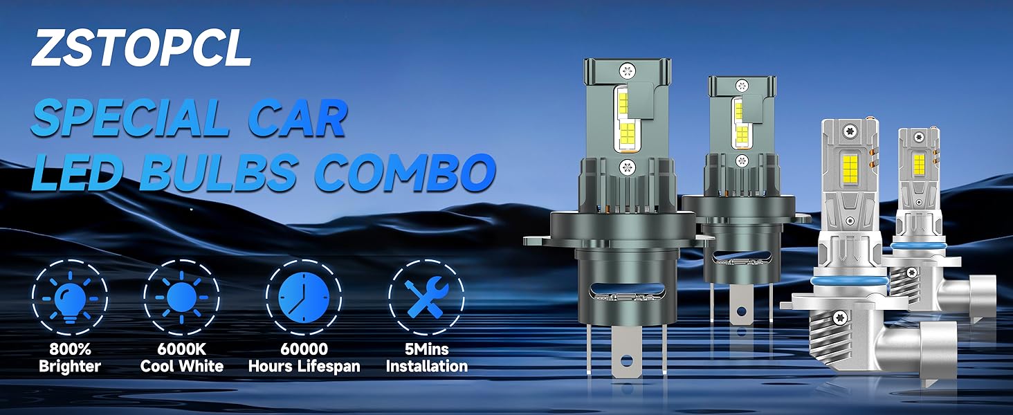 【Upgraded 800% Brightness】ZSTOPCL latest bulb adopts a double-sided 16pcs CSP chips design, with a full light pattern and no black spots. It can emit 44000LM, which is 800% brighter than the original car halogen lamp, making your night driving vision clearer and enjoying the fun of night driving