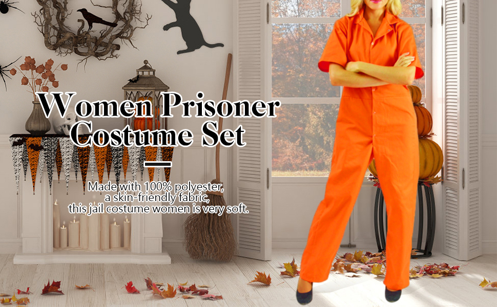 Package includes: 1* Prisoner Costume Set(1 * Long Sleeve Tops +1* Long Pants +1* Hat). Celebrate Halloween in style with our prisoner Halloween costume woman that are vintage and spooky