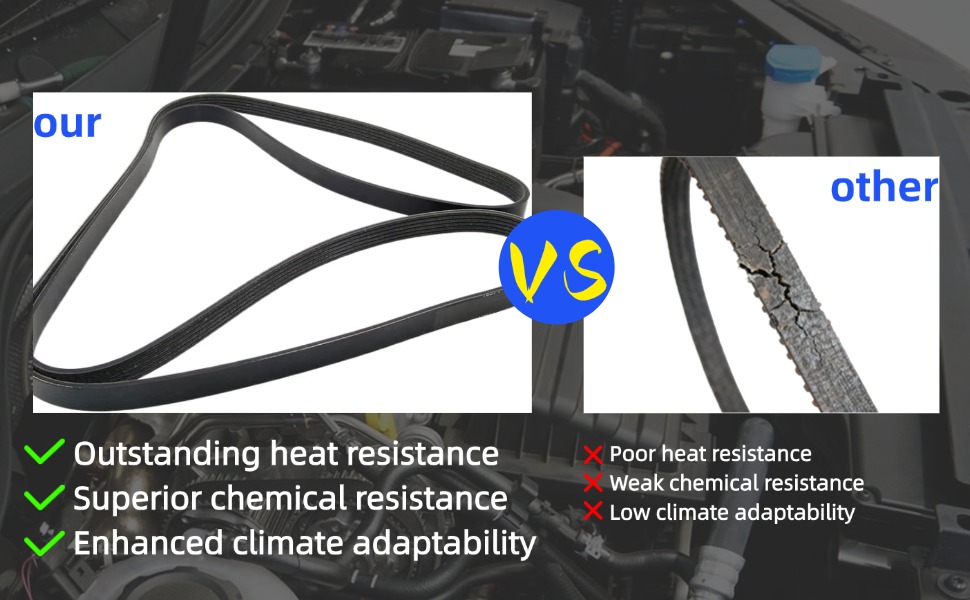- Premium Material: Serpentine drive belt is made of rubber material, high performance