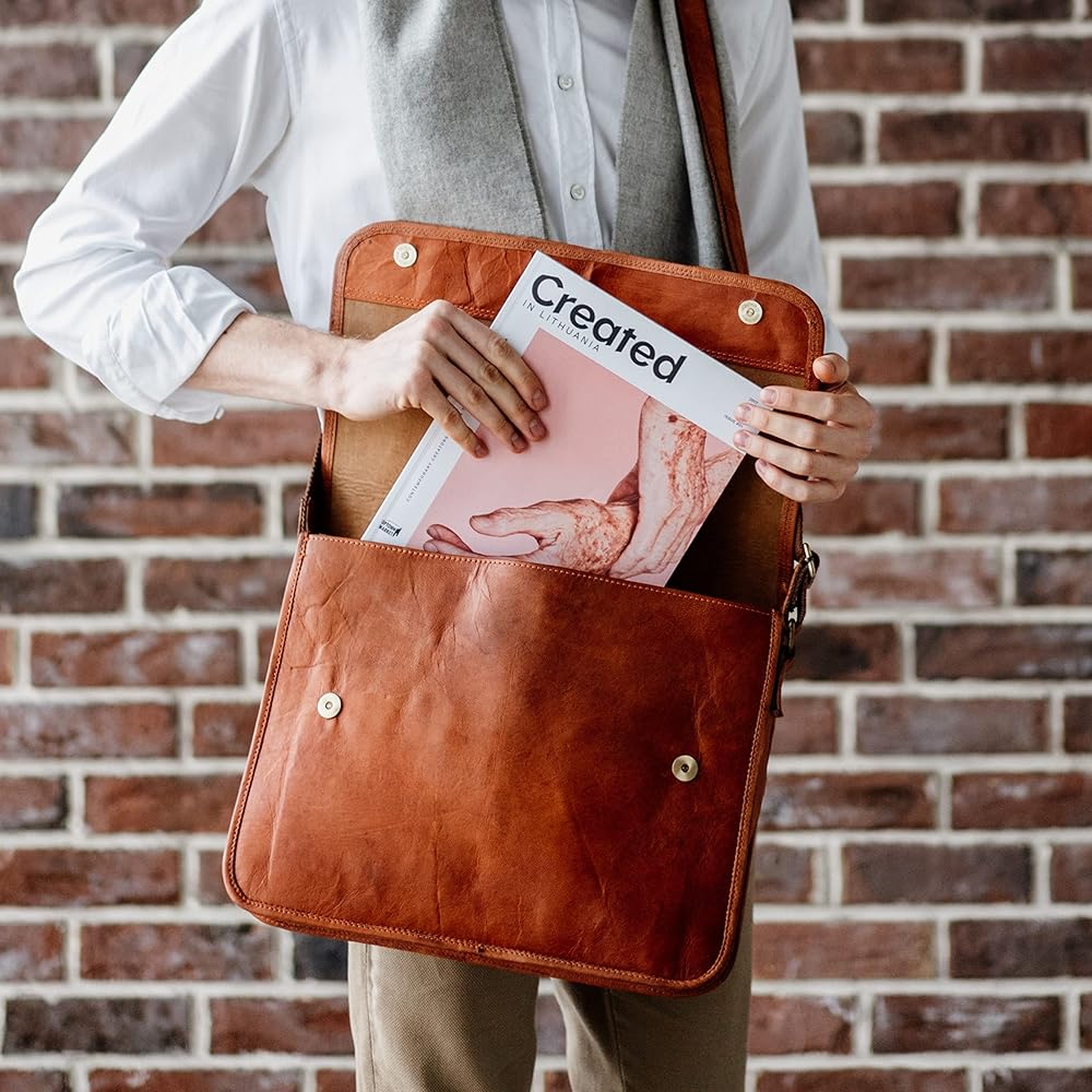 💪MADE TO LAST. The Ghent messenger bag is made of 100% genuine leather and lined with soft cotton. This vintage style satchel is built to last, with metal magnetic snaps, metal YKK zippers, and an adjustable strap so you can sling it over your shoulder. Its classic look means it can be used for the office or a casual day out